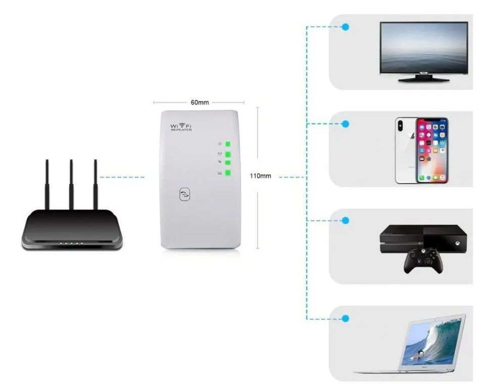Basta conectá-lo a uma tomada e configurar para ter o sinal WI-FI ampliado! Você conseguirá conectar smartphones, tablets, smart TVs e outros dispositivos!